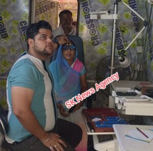 मरीज के नेत्रों को जांचते चिकित्सक—Sk News Agencyयह निशुल्क नेत्र चिकित्सा शिविर कल्याण करोति मथुरा द्वारा संचलित श्री जी बाबा नेत्र चिकित्सा संस्थान मथुरा एवं श्याम स्टील लिमिटेड कोलकाता के तत्वावधान में आयोजित किया जाता है।आज आयोजित कैंप में 102 मरीजों ने अपना पंजीकरण कराया।