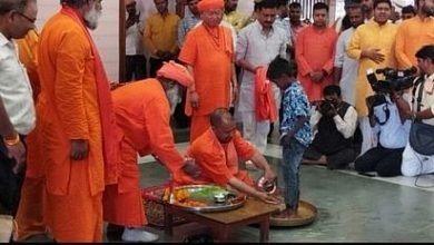 गोरखनाथ मंदिर में मुख्यमंत्री ने कन्याओं के पखारे पांव।